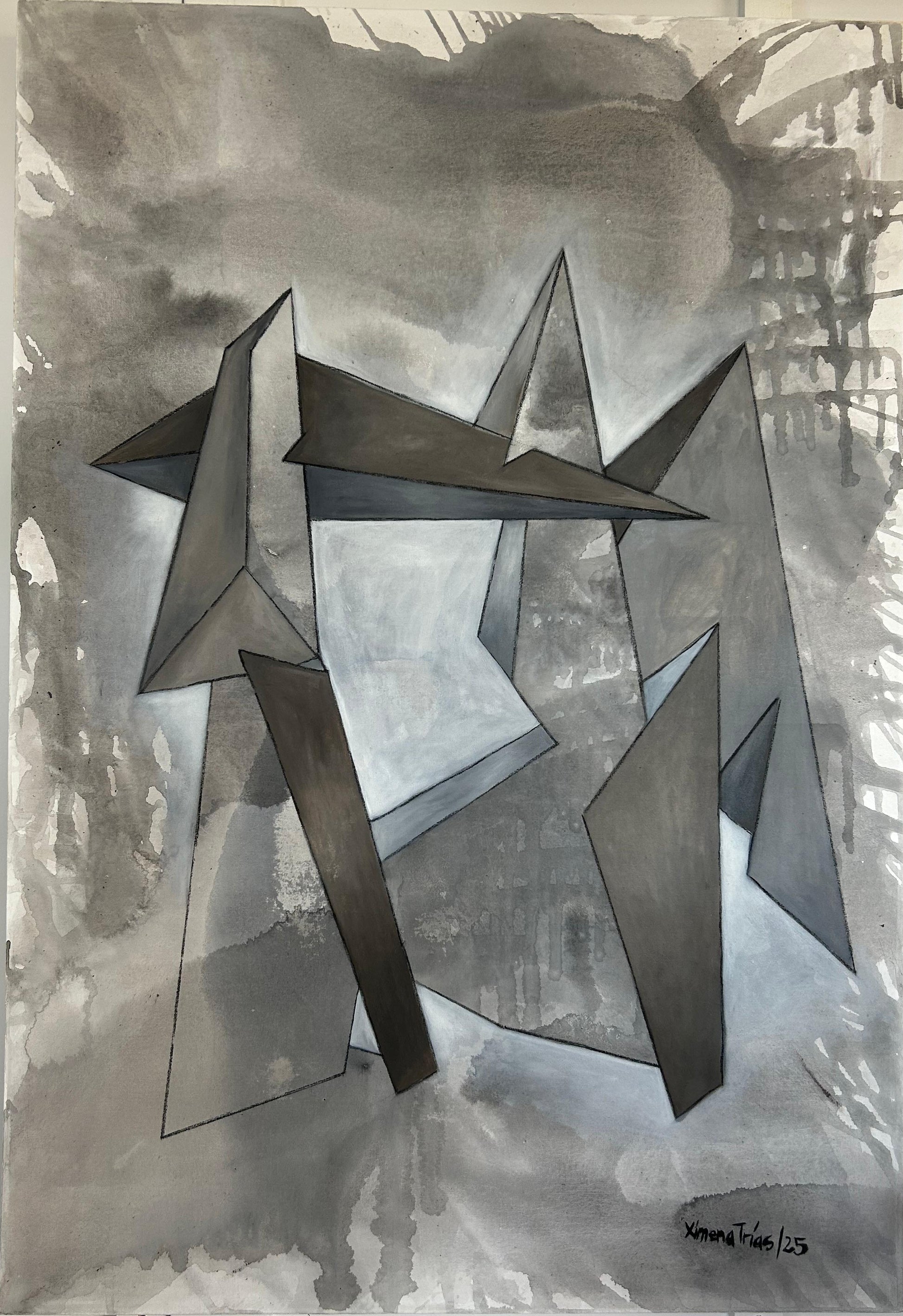 Expreso mi obra mediante geometrías abstractas, estructuras, origamis, laberintos, sin buscar líneas perfectas, al contrario, encontrar la belleza en la línea "imperfecta", representando las fluctuaciones de la vida.