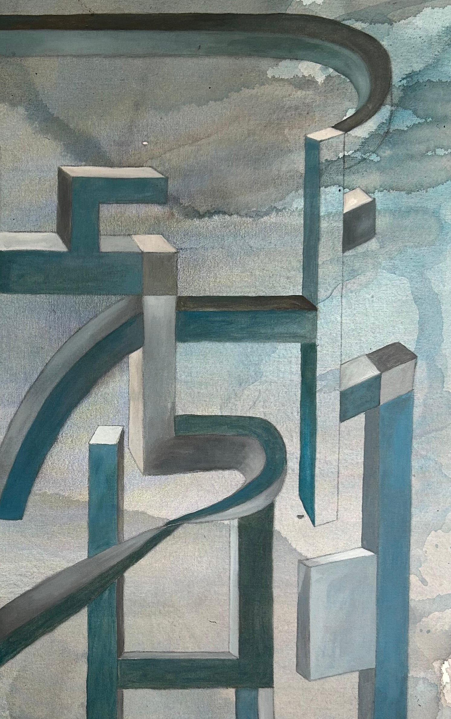 Expreso mi obra mediante geometrías abstractas, estructuras, origamis, laberintos, sin buscar líneas perfectas, al contrario, encontrar la belleza en la línea "imperfecta", representando las fluctuaciones de la vida.